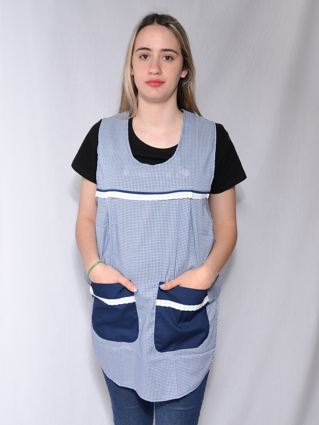 Guardapolvo sin mangas, confeccionado con tela Arciel cuadrille, cuenta con 2 bolsillos pensados en tu comodidad al trabajar.