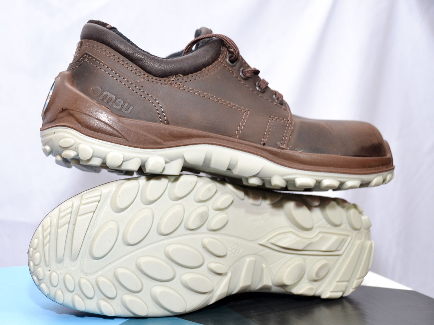 Zapato de seguridad de marca OMBU con puntera de Composite (Bajo normas). Confeccionado con Cuero Vacuno Flor con acabado Nobuk.